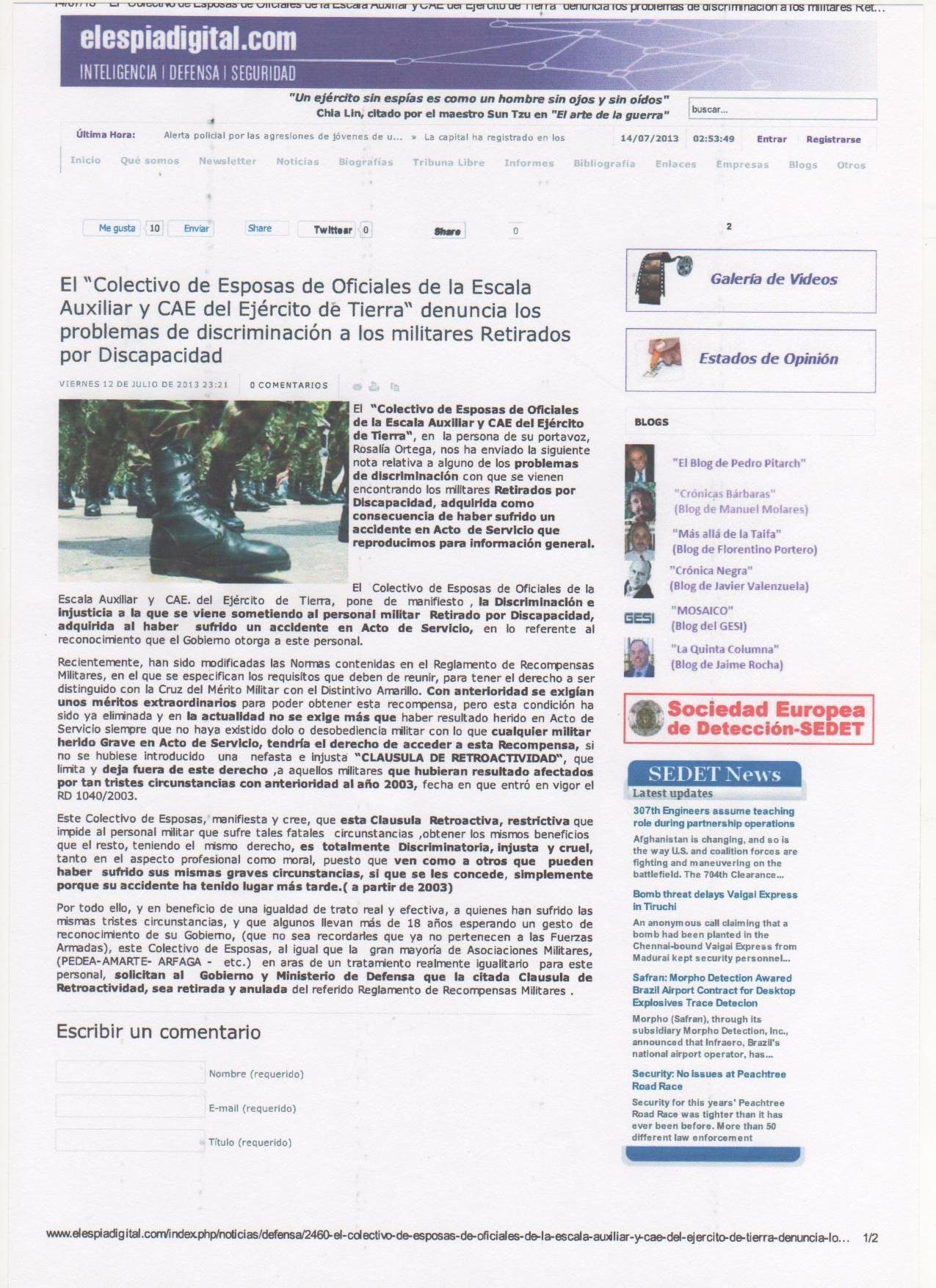 Hola, en primer lugar un afectuoso saludo como siempre para todos los infatigables compañeros de PEDEA, y de las Escalas Auxiliares y CAE del ET.